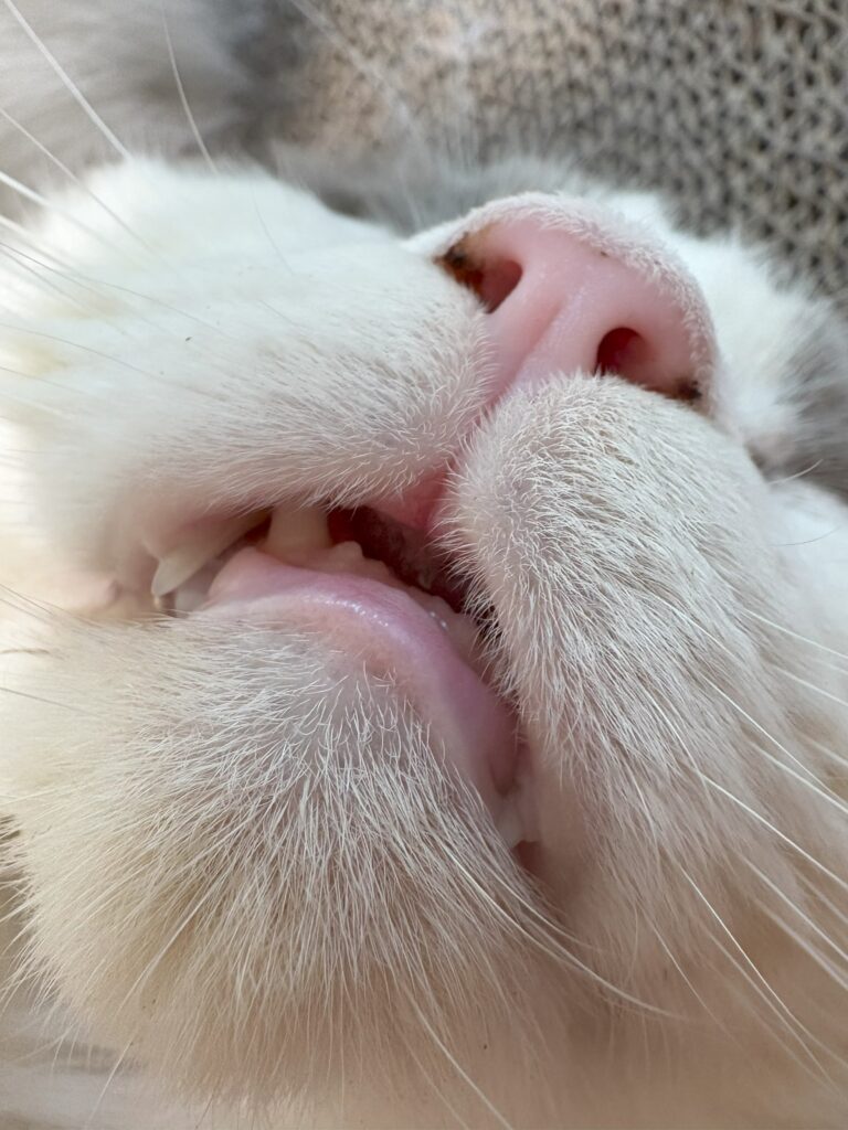 我が家の猫さん、気持ちよさそうにお口を少し開けて熟睡中。