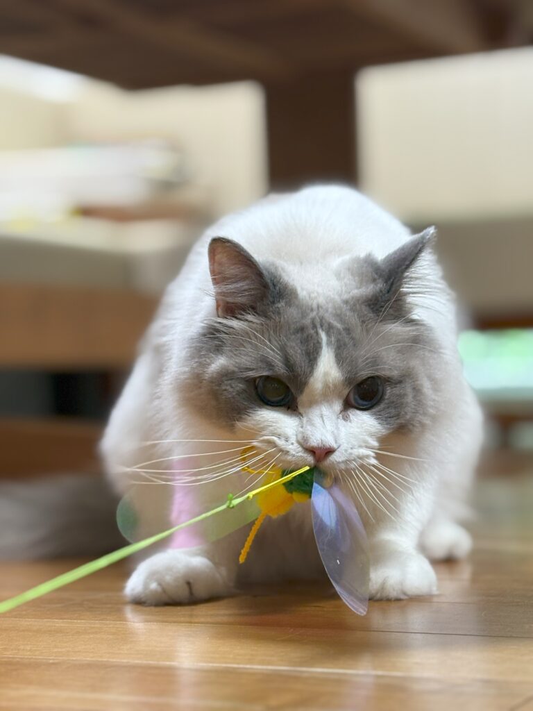 新しいおもちゃを出したら、顔つきが一気に若返る猫さん。
