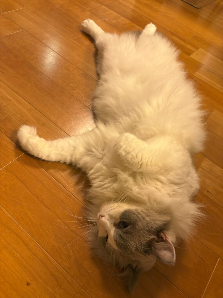 朝、床でごろんと横になっていたので、かわいい寝顔を撮ろうとカメラを向けたら…
